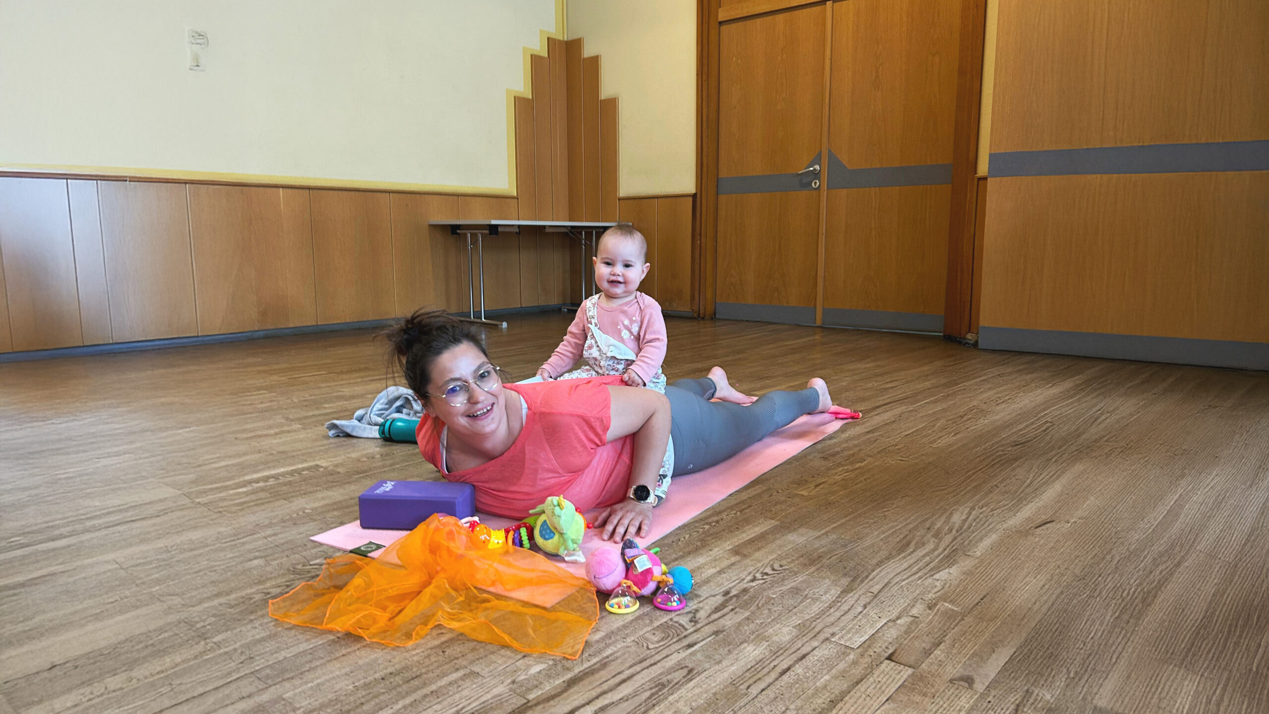 Genieße wertvolle Zeit mit deinem Baby. Während du sanfte Yoga-Übungen machst und zurück in deine kraftvolle Mitte findest.